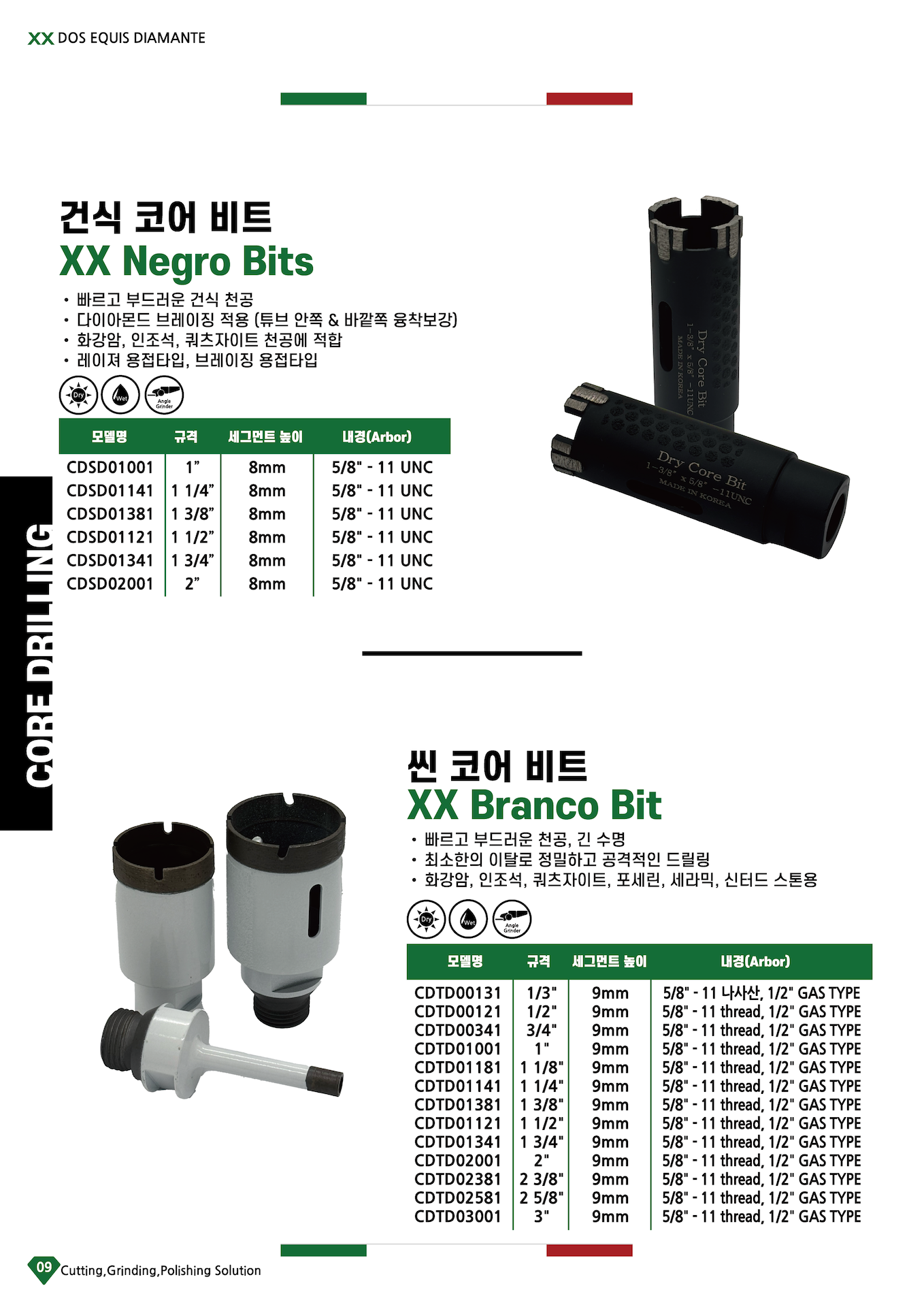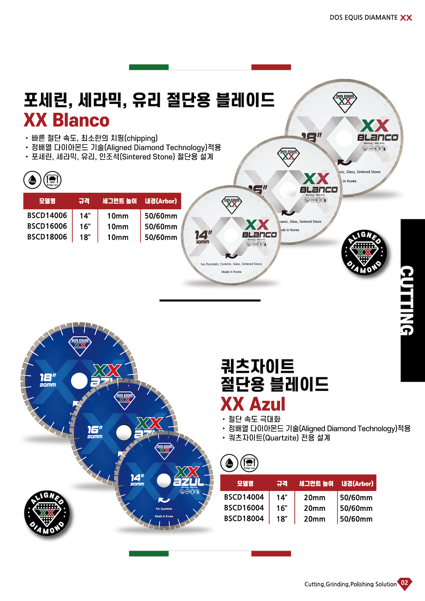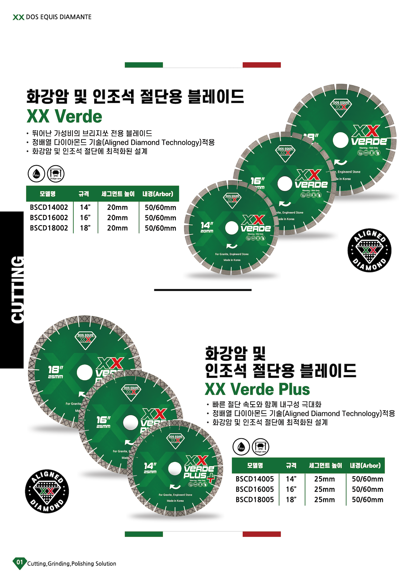 이 공구들은 가장 단단한 물질로 알려진 다이아몬드 세그먼트가 박혀 있어, 극도로 단단한 표면에서도 정밀하고 매끄러우며 내구성 있는 마감을 가능하게 합니다. 제품군은 일반적으로 다이아몬드 블레이드, 코어 드릴, 연삭 컵, 연마 패드를 포함하며, 각각 성형, 모서리 가공, 표면 마감 또는 구멍 뚫기와 같은 특정 용도에 맞춰 제작됩니다.