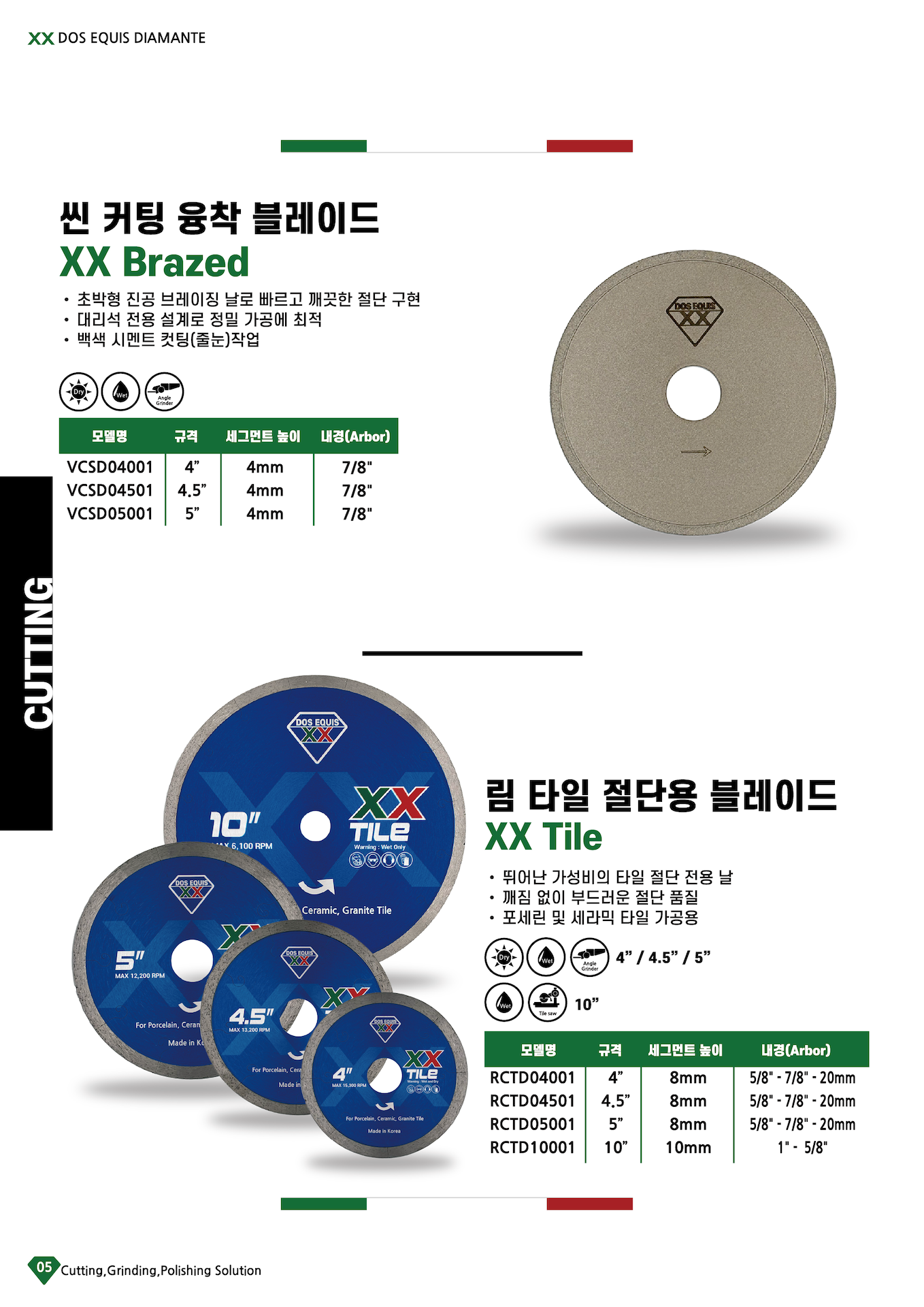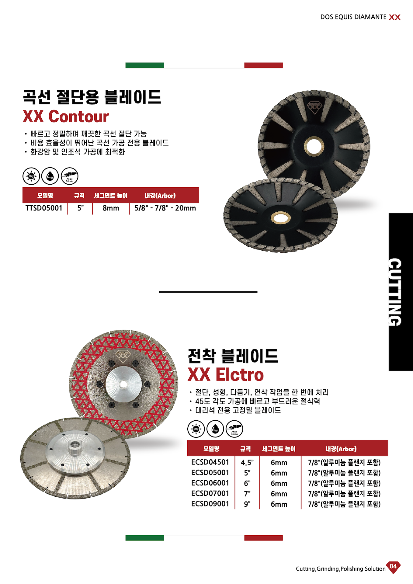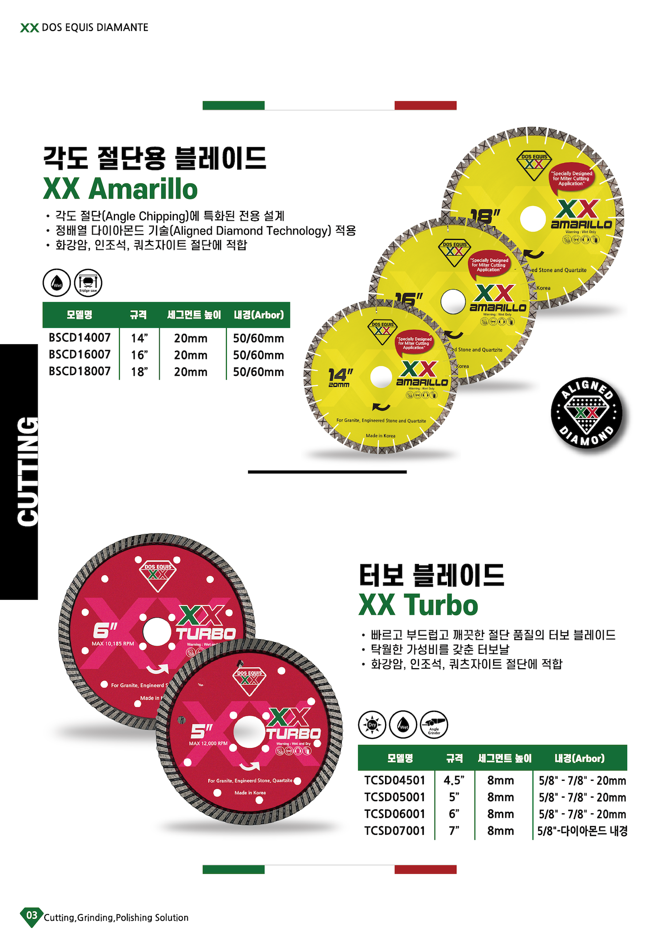 이 공구들은 가장 단단한 물질로 알려진 다이아몬드 세그먼트가 박혀 있어, 극도로 단단한 표면에서도 정밀하고 매끄러우며 내구성 있는 마감을 가능하게 합니다. 제품군은 일반적으로 다이아몬드 블레이드, 코어 드릴, 연삭 컵, 연마 패드를 포함하며, 각각 성형, 모서리 가공, 표면 마감 또는 구멍 뚫기와 같은 특정 용도에 맞춰 제작됩니다.
